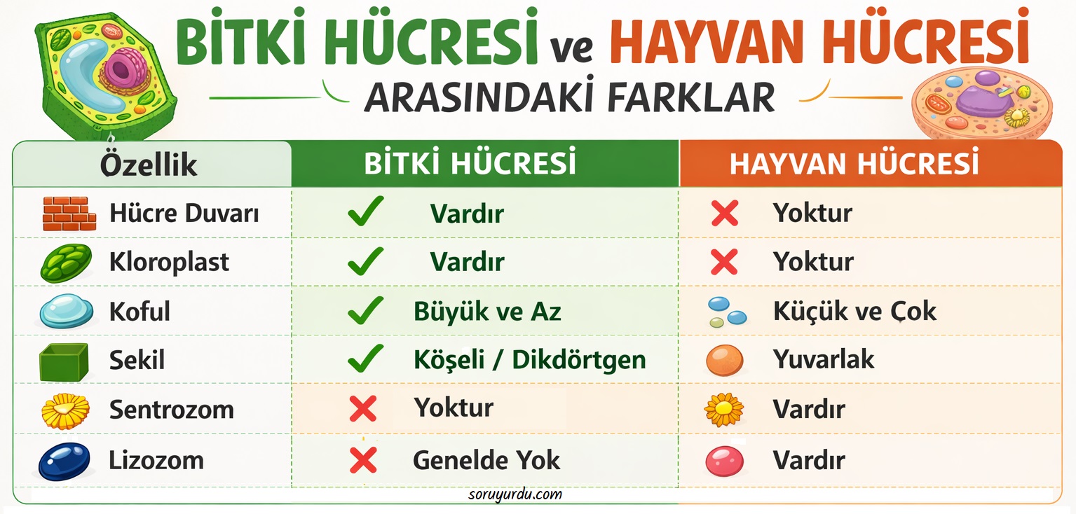 Bitki ve Hayvan Hücresi Arasındaki Farklar