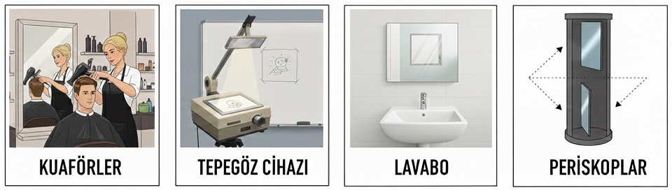 - Tümsek aynaları günlük hayatta yol kavşaklarında, otomobillerin yan aynalarında, araçların altını kontrol etmede ve mağazalarda kullanırız.