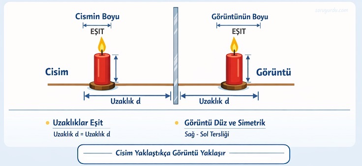 - Cismin aynaya uzaklığı, görüntünün aynaya uzaklığına eşittir.