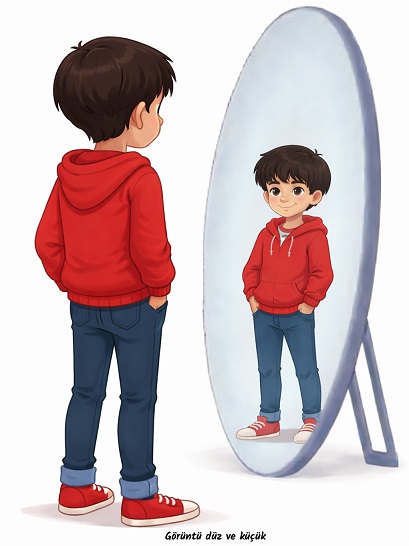 - Görüntü düz ve cisme göre simetriktir.