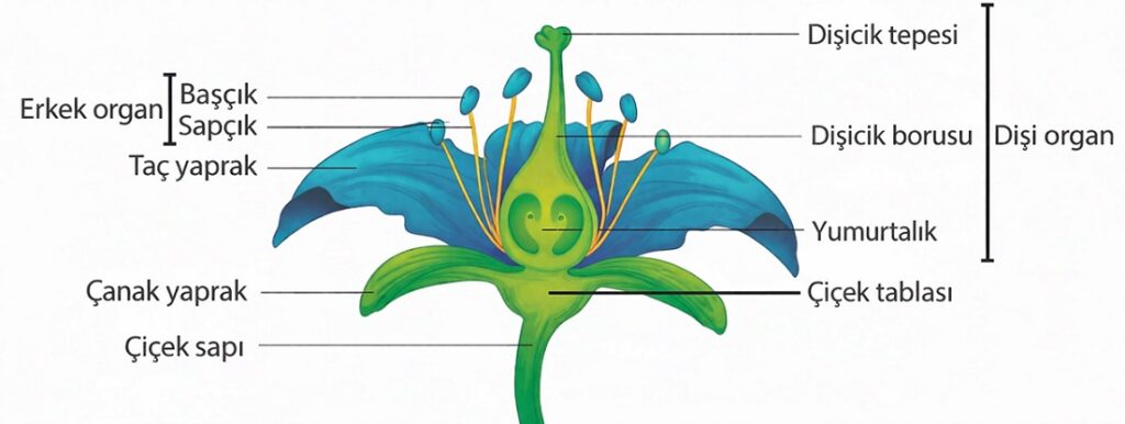 Çiçek Tablası: Çiçeğin diğer kısımlarını üzerinde taşıyan yapıdır.