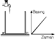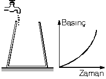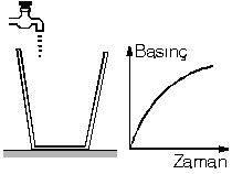 - Yine şekildeki kaba akış hızı sabit olan musluktan su akıyor. Kap yukarı doğru genişlediği için kaptaki sıvı yüksekliğindeki artış zamanla yavaşlayacaktır.