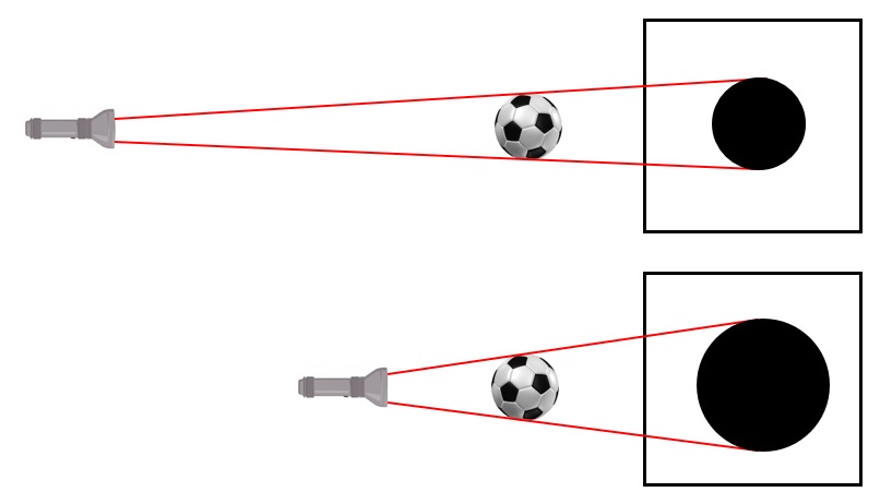 Işık kaynağının yeri değişmeden; cisim ışık kaynağına yaklaştırılırsa gölge boyu büyür, cisim ışık kaynağından uzaklaşırsa gölge boyu küçülür.